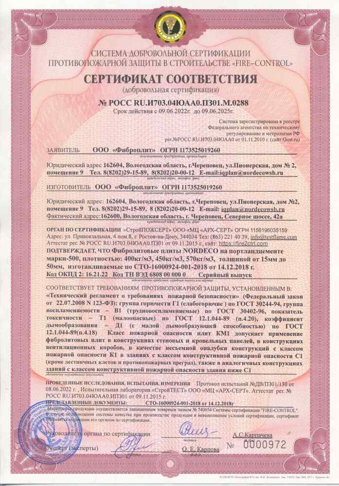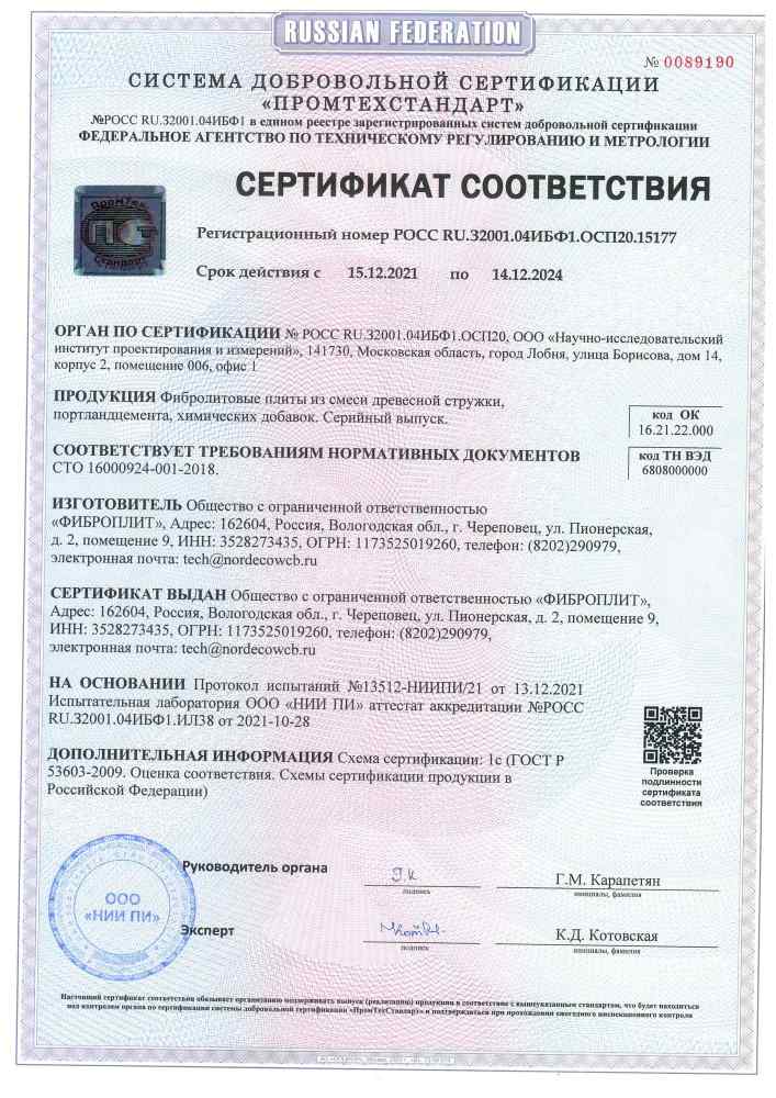 Фибролитовая плита Nordeco ФП 450-35С 2400х600х35 средней плотности на сером цементе