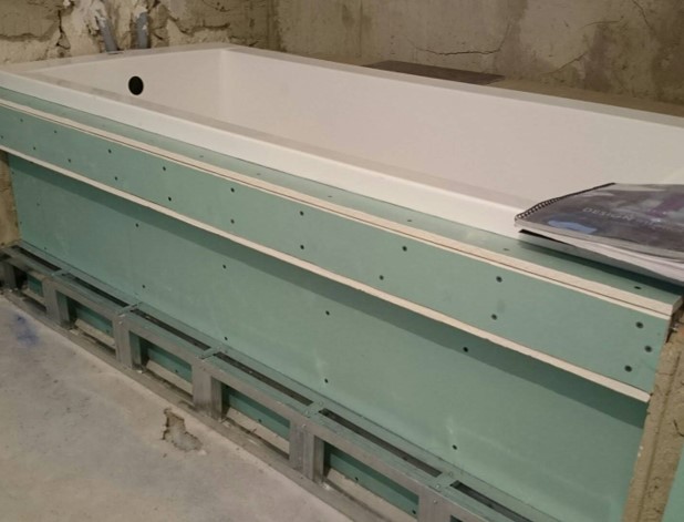 Предназначен для изготовления подвесных потолков в зданиях и помещениях с влажным и мокрым влажностными режимами с обеспечением вытяжной вентиляцией и при условии защиты лицевой поверхности, например: гидроизоляцией, водостойкими грунтовками, красками, керамической плиткой и т.п. Состоит из гипсового сердечника с армирующими добавками, оклеенного с двух сторон картоном. Боковые (продольные) кромки листа также оклеены картоном и имеют утоненную форму. Основными преимуществами данного продукта является легкий вес, гладкая поверхность и устойчивость к влаге. Согласно ГОСТ 6266-97 листы гипсокартона могут иметь допуски по ширине и длине до 5 мм в меньшую сторону.